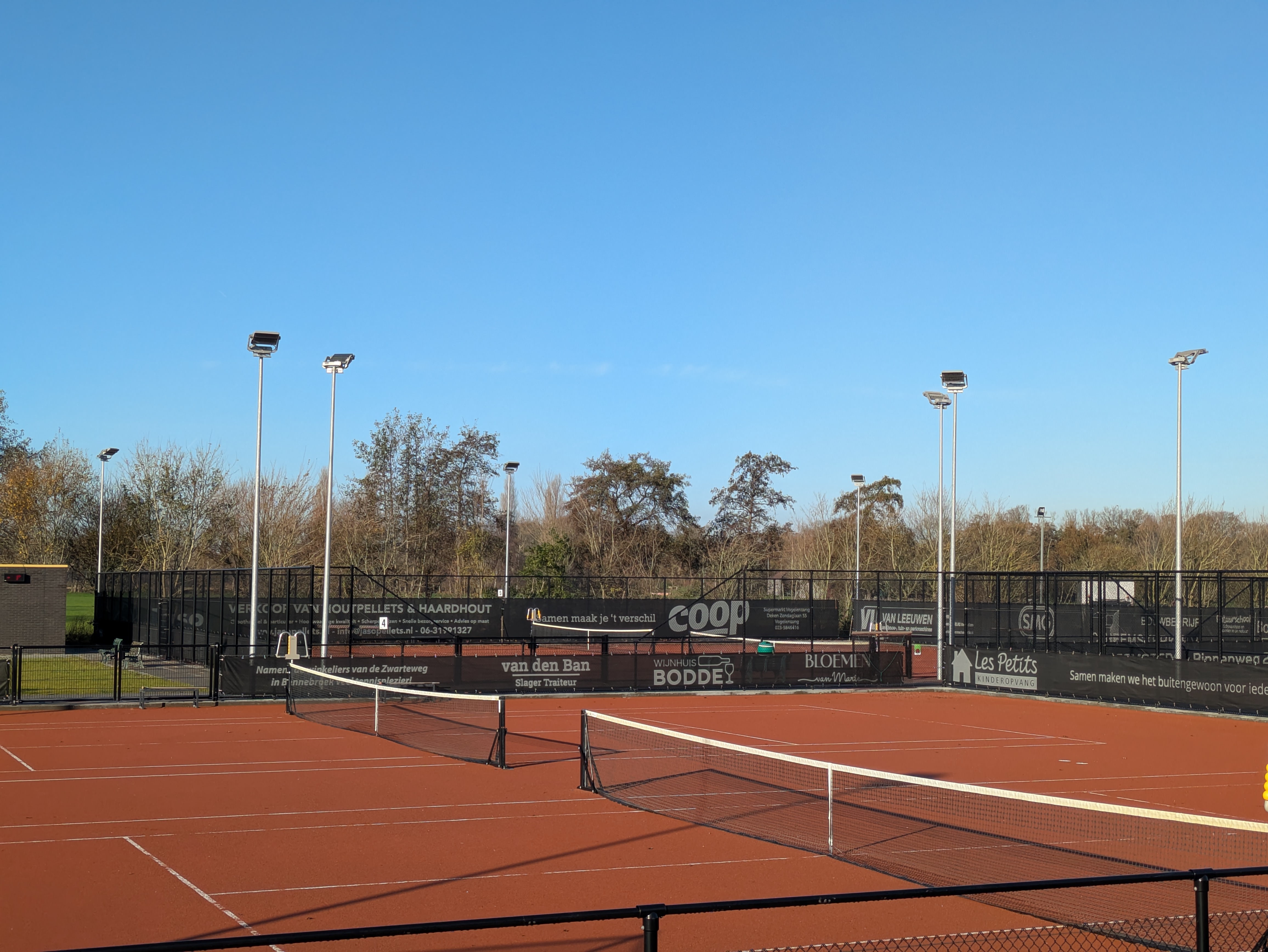 Naast voetballen kijken, kun je ook (met zon) komen tennissen!